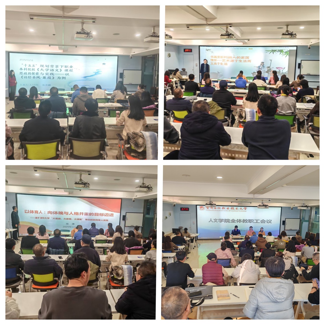 为全面贯彻习近平新时代中国特色社会主义思想和党的二十届四中全会精神,落实全国高校思想政治工作会议精神,推进学校课程思政建设工作,12月18日下午,人文学院在第五工业中心604教室开展了课程思政集体备课会议。学院领导班子及全体教职工参加会议。