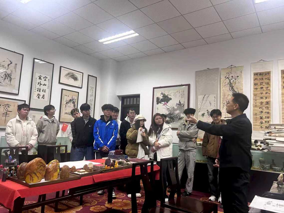 为深入贯彻落实高校“双带头人”教师党支部书记“强国行”专项行动要求,充分发挥教师党支部在实践育人中的示范引领作用,3月18日,人文学院直属党支部党员那贞婷、尹顺民走进非遗与传统文化工作室,聆听王立恒老师的《玉文化与古钱币鉴赏》课程,并与现场学生共同开展实践活动,在沉浸式体验中探索“党建+文化育人”新路径。